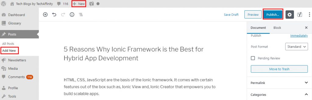 - Add New Post and Publish Blog Quickly